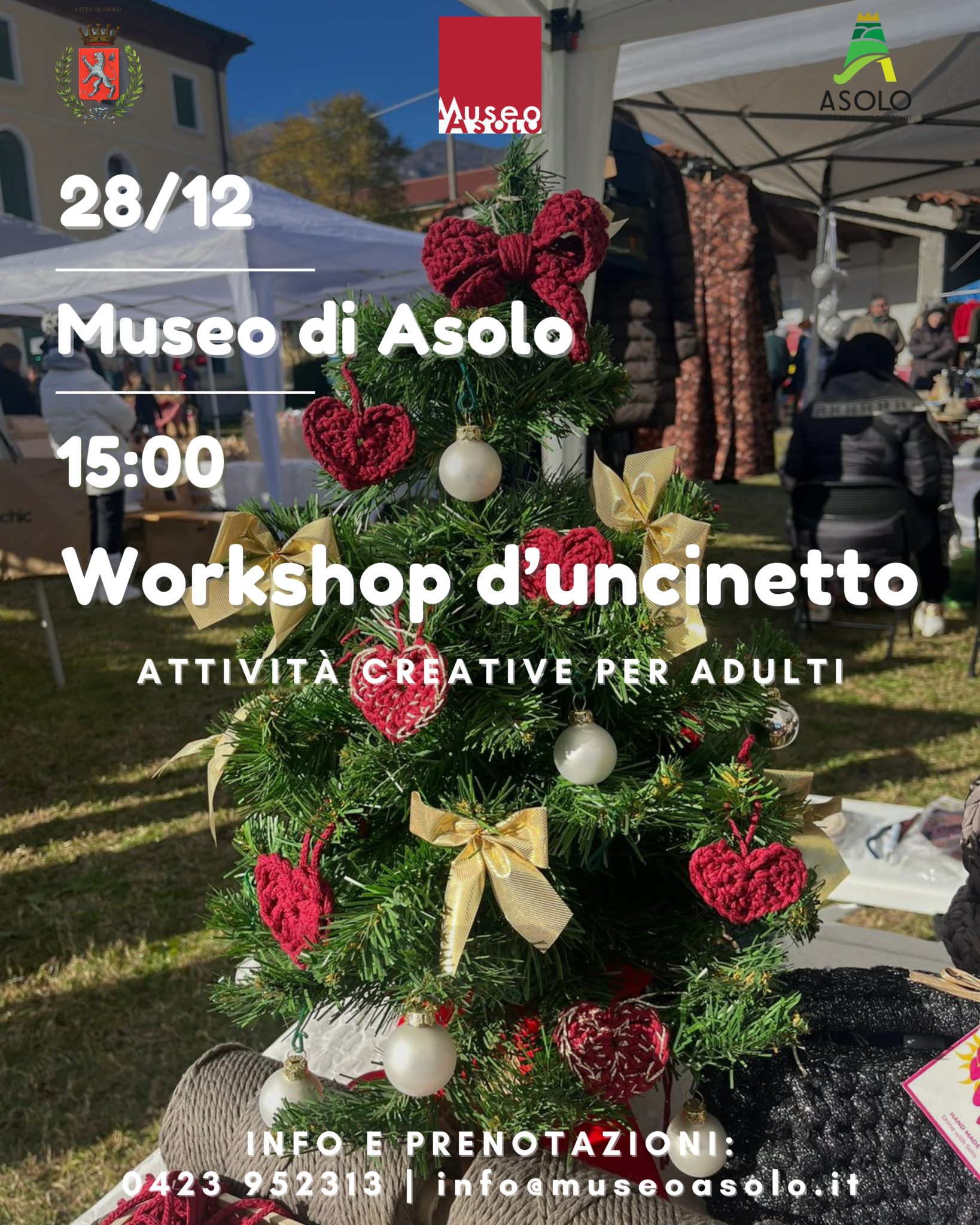 La lavorazione tessile ha costituito una colonna portante della produzione artigianale di Asolo. Il Museo Civico ha il piacere di invitarvi a questa iniziativa durante la quale verrà data la possibilità di mettersi in gioco e creare, attraverso la tecnica dell’uncinetto, una decorazione che impreziosirà i vostri alberi di natale. I partecipanti saranno guidati e affiancati da Elisa Fincato, esperta della lavorazione a uncinetto.